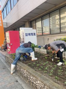 本日は種花の方々が雑草だらけになっていた都島郵便局の花壇に